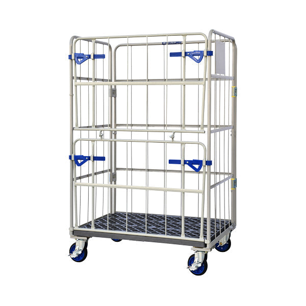 【送料込】カーゴプレスタ ダブルゲート付きカゴ車 プラスチック製床 1000x650x1700